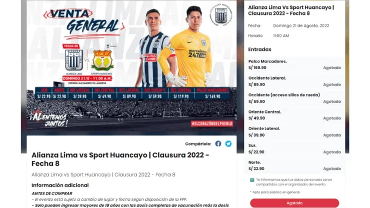 Alianza Limarecibirá aSport Huancayoeste domingo 21 de agosto a las 11:00 (hora peruana) en el estadio Alejandro Villanueva, el cual lucirá completamente abarrotado. Pese al horario, la hinchada ‘íntima’ agotó todas las entradas del duelo. Cabe recordar que este duelo corresponde a la octava fecha del Torneo Clausura.