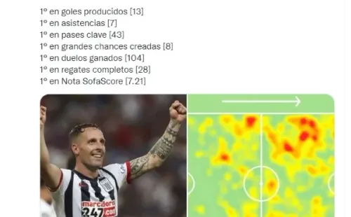De esta forma, y basándonos netamente en las estadísticas, Pablo Lavandeira ocupa un puesto privilegiado. Alcanzando la información la cuenta de SofaScore de Latinoamérica, el mediocampista uruguayo destaca como el mejor en goles producidos (13), asistencias (7) y pases claves (43), en todo de lo que va del Torneo Apertura de Alianza Lima