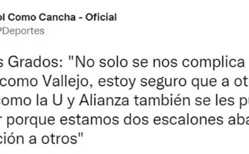 “No solo se nos complica a nosotros como César Vallejo, estoy seguro que a otros equipos como Universitario y Alianza Lima también se les puede complicar porque estamos dos escalones abajo en comparación a otros”, declaró el golero de los ‘poetas’ a RPP, dejando en claro que los otros equipos peruano que participarán en el mismo torneo también la tendrán muy difícil.
