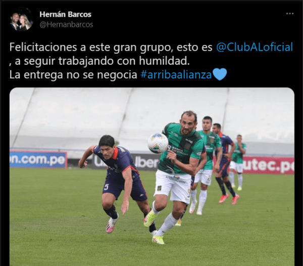 “Felicitaciones a este gran grupo, esto es Alianza Lima, a seguir trabajando con humildad. La entrega no se negocia. Arriba Alianza”. Fue lo que propuso Barcos la mañana del día siguiente de la victoria ante César Vallejo. Generando en los hinchas una alegría impresionante, apoyando todo lo puesto por el ex Gremio de Porto Alegre.