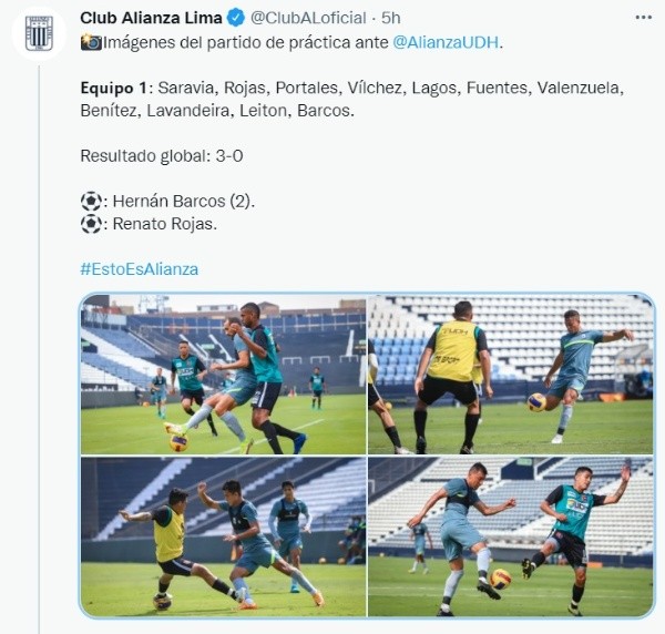 Cabe resaltar que el pasado jueves 17 de marzo, Alianza Lima tuvo otro partido de práctica donde enfrentó a Alfonso Ugarte, logrando ganar por 1-0 con gol del paraguayo Edgar Benítez. De esta manera los ‘íntimos’ se vienen preparando para lo que será el encuentro con Sport Huancayo, en la incontrastable, por la jornada 8 de la Liga 1.