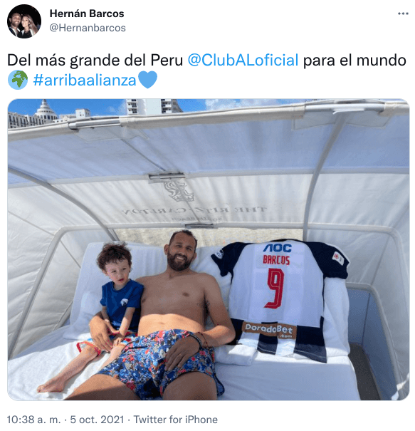 “Del más grande del Peru, Club Alianza Lima, para el mundo”, escribió junto con un hashtag:#arribaalianza. Además, puso una foto suya con un niño y su camiseta del club aliancista. Obviamente, la imagen rápidamente se viralizó con muchísimos likes.