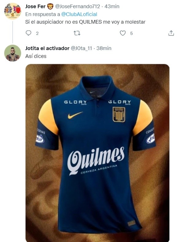 Los aficionados de Alianza Lima se encuentran encantados con la indumentaria alternativa del conjunto ‘blanquiazul’, mientras otros la han comparado con la camisetas de otros equipos como Boca Juniors: “Parece la camiseta de los Pumas de México”, “Literalmente con los colores de Boca Juniors”, “Que bonita, te quiero mucho Alianza Lima”, “Le quitas los detalles de las mangas y estaba perfecta, pero igual está linda”, esas fueron las reacciones de algunos hinchas.