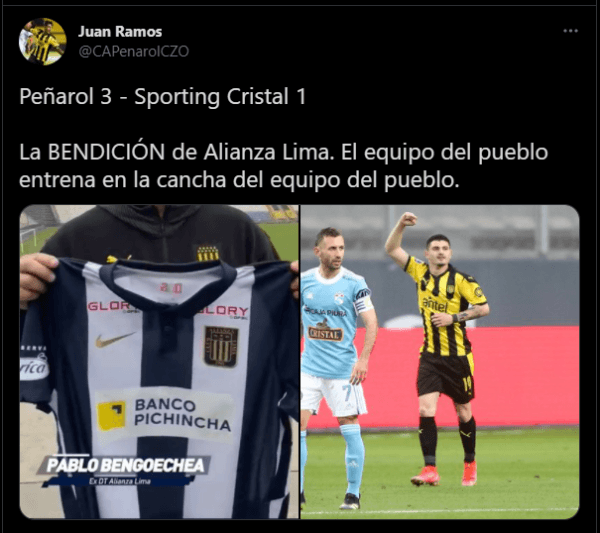 Pero la historia no queda ahí, el partido también se juega en las redes sociales. Los seguidores ‘manya’ hicieron tendencia rápidamente su agradecimiento a Alianza Lima por el cariño mostrado un día antes de este cotejo, ya sea por Pablo Bengoechea quien supo ser su entrenador, o el respeto a una institución del tamaño de Peñarol.