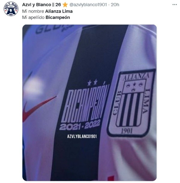 Así es, la camiseta de Alianza Lima para la temporada 2023 de la Liga 1 portará el rótulo de “Bicampeón 2021 – 2022”, así lo develó vía Twitter la cuenta Azvl y Blanco, que luego fue confirmada a la hora de presentarse Andrés Andrade.