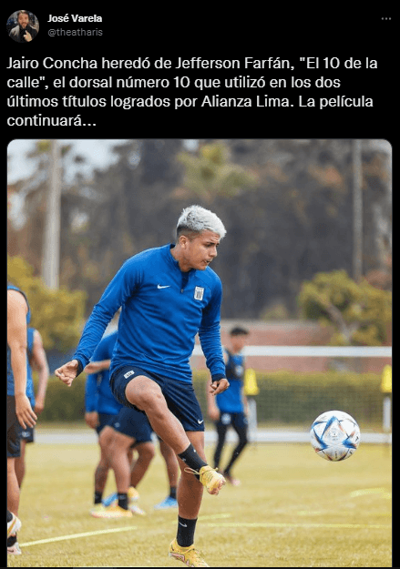 Lo que presenta el comunicador social, especialista en el universo íntimo, es lo siguiente: “Jairo Concha heredó de Jefferson Farfán, “El 10 de la calle”, el dorsal número 10 que utilizó en los dos últimos títulos logrados por Alianza Lima. La película continuará”.