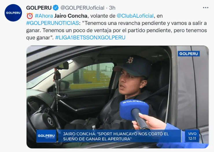 “Estamos muy enfocados en el partido del fin de semana ante Sport Huancayo. Yo no pude jugar el partido de ida en Huancayo, pero por todo lo que comentaron mis compañeros este partido lo tomamos como una revancha. Creo que ellos nos quitaron el sueño de ganar el torneo Apertura, por eso tenemos una revancha pendiente y el domingo haremos todo lo posible por cobrarla”, dijo el futbolistaen GOLPERU.