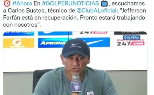 Comentando que también estará de baja por dos meses, quizá esta sea la mala noticia para Alianza Lima. Pronosticando que podría volver para junio, con ello queda claro que Jefferson Farfán se perderá todo lo que resta del Torneo Apertura y también no podrá disputar ningún cotejo de la Fase de Grupos de la Copa Libertadores.