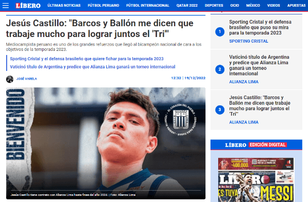 En una charla con el Diario Líbero, el volante comentó detalles sobre su actualidad. Primero su estilo de juego y a quienes referencia del universo fútbol: “Me gusta el juego de Rodrigo de Paul y Enzo Fernández, con ellos me veo reflejado. Estoy feliz por el título que ha logrado Argentina, porque es un país sudamericano. Mi reflexión es que nosotros también podemos competir a ese nivel, la cosa es trabajar y trabajar”.