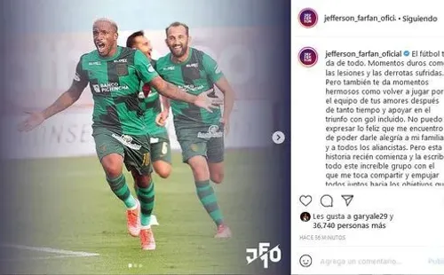 Tras el encuentro, Jefferson compartió un motivo mensaje en su cuenta de Instagram: “El fútbol te da de todo. Momentos duros como las lesiones y las derrotas sufridas. Pero también te da momentos hermosos como volver a jugar por el equipo de tus amores después de tanto tiempo y apoyar en el triunfo con gol incluido”.