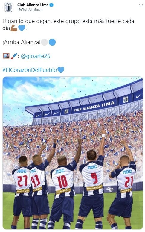 El equipo de Carlos Bustosha empezado estas dos primeras fechas sumando 4 puntos y lo que ansía el cuadro ‘íntimo’ es llegar a los Play Off, para poder disputar la final del título nacional. Pero este tipo de inconvenientes podrían afectar o causar problemas en la interna del club, por lo que, en su cuenta oficial de Twitter, Alianza Lima publicó lo siguiente: “Digan lo que digan, este grupo está más fuerte cada día“, agregó el conjunto de La Victoria.