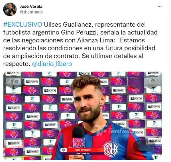 “Estamos resolviendo las condiciones en una futura posibilidad de ampliación de contrato. Se ultiman detalles al respecto”, comentó en su cuenta de Twitter. En esa misma línea, el representante brindó más detalles de cómo van las negociaciones con Alianza Lima.