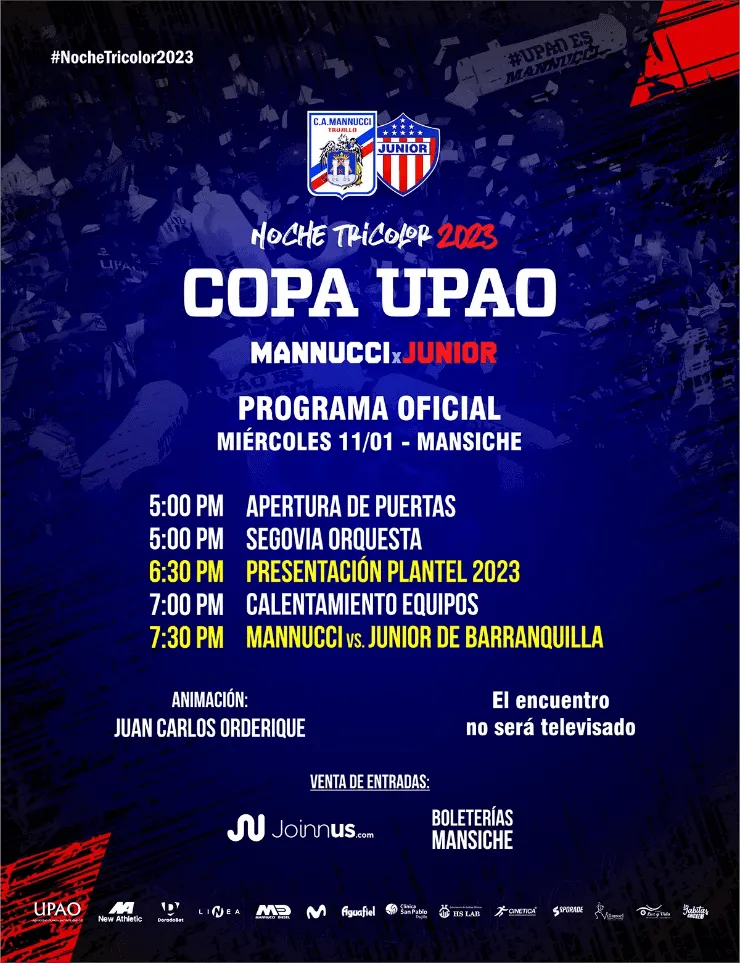 Recordemos que Junior enfrentará también a Carlos A. Mannucci en Trujillo por la Copa Upao. El duelo esta programado para este 11 de enero en el estadio de Mansiche, que abriá sus puertasdesde las 17:00 hrs. (hora peruana y de Colombia).