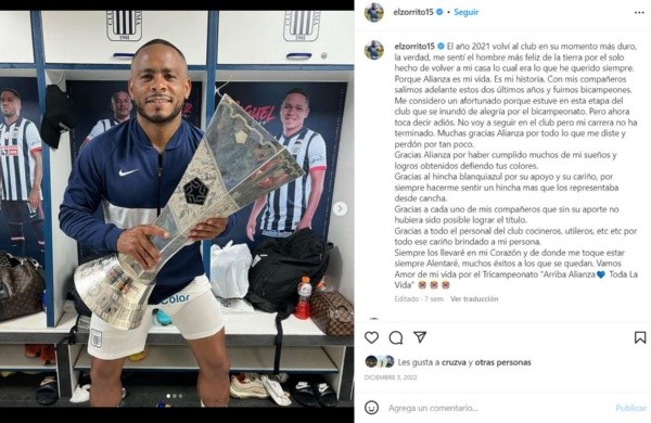 Actualmente el ‘Zorrito’ está sin club, pero con alternativas. Siendo pocas las que llegan desde la Liga 1, y luego que Alianza Lima no le renueve después de haberse consagrado bicampeón las dos últimas temporadas, el atacante sigue a la espera de cerrar su vínculo con un club de Primera División.