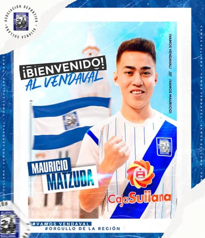 “Mauricio Matzuda 2023. ¡Vamos Vendaval, vamos Mauricio! ¡Bienvenido!”, escribió Alianza Atlético en sus redes sociales.