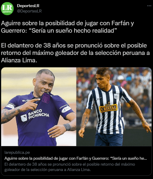 Afirmando lo que prácticamente es un sueño de cada hincha ‘blanquiazul’, él transmite ese pensamiento: “Sería un sueño hecho realidad jugar con Guerrero y Farfán en Alianza. Se habla mucho, pero uno no sabe lo que Guerrero pueda estar pensando, ojalá se anime a regresar y se retire por la puerta grande”.