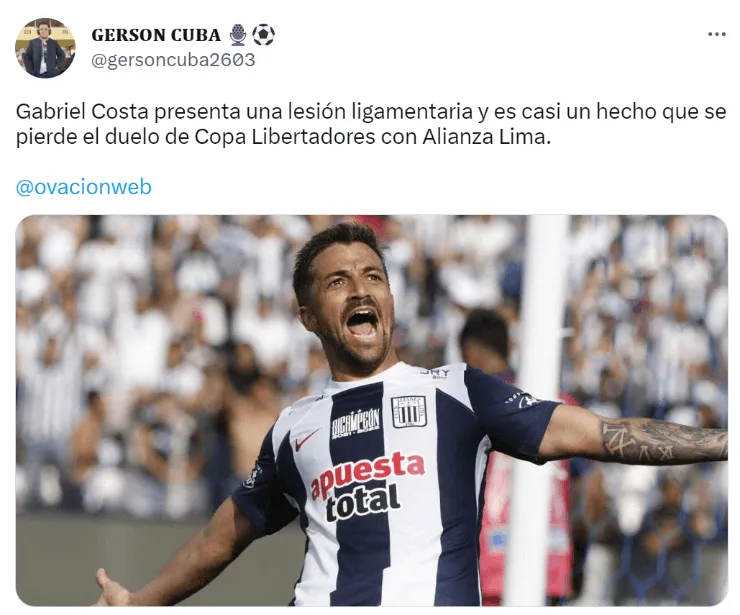 Sin embargo, no todo es color de rosa para los victorianos, ya que sufrieron una dura baja de cara a este compromiso. Según lo que informa el periodista Gerson Cuba es prácticamente un hecho la ausencia de Gabriel Costa.