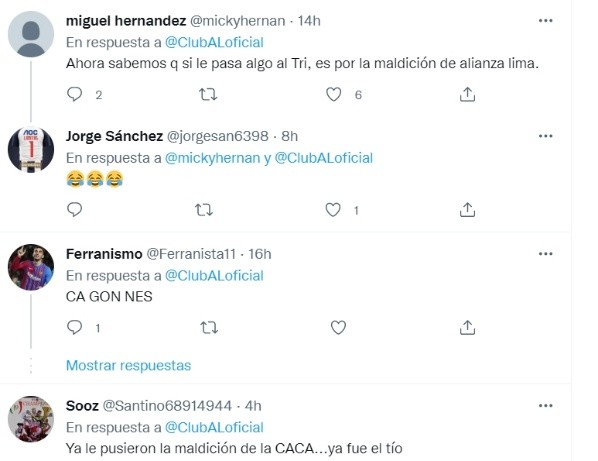 En ese sentido, varios usuarios comentaron en Twitter la publicación de Alianza Lima. Haciendo referencio a la “maldición“, los cibernautas advirtieron a Alex Lora de que quizás desgracias para él estaban por llegar.