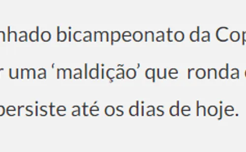 Sin embargo, lo que más llama la atención y ha empezado a asustar a los medios de Brasil, no es por lo que ha hecho los íntimos en estas dos últimas temporadas, sino por la famosa Maldición que tienen, que casi mundialmente es conocida. Esto lo hicieron saber en una nota hecha por el medio escrito Hoje em Dia.