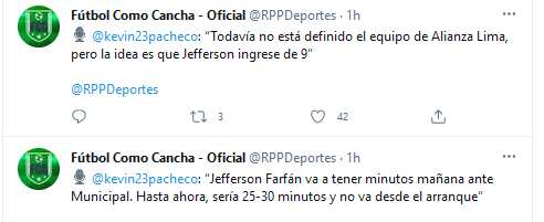 Este lunes, Kevin Pacheco de RPP habló de esto. “Todavía no está definido el equipo de Alianza Lima, pero la idea es que Jefferson ingrese de 9, señaló en Fútbol como Cancha.