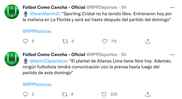 Por el lado de Alianza Lima, fue Kevin Pacheco quien brindó la siguiente información: “El plantel de Alianza Lima tiene libre hoy. Además, ningún futbolista tendrá comunicación con la prensa hasta luego del partido de este domingo”. Así, se vienen preparando ambos clubes ¡A estar pendientes!