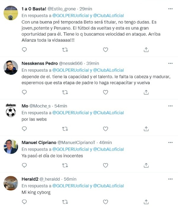 Aunque, pero de menor manera, un pequeño grupo de fanáticos de Alianza Lima respaldó la presencia de Beto Da Silva siempre y cuando sea completamente profesional y se entregue al máximo durante la pretemporada del plantel. Así pues, el delantero peruano generó una gran cantidad de comentarios: positivos y negativos.