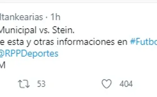 Hace pocos minutos, Jesus el Tanqui Arias de RPP brindó sí un dato importante. “No se juega el Municipal vs. Stein”, escribió en su twitter.