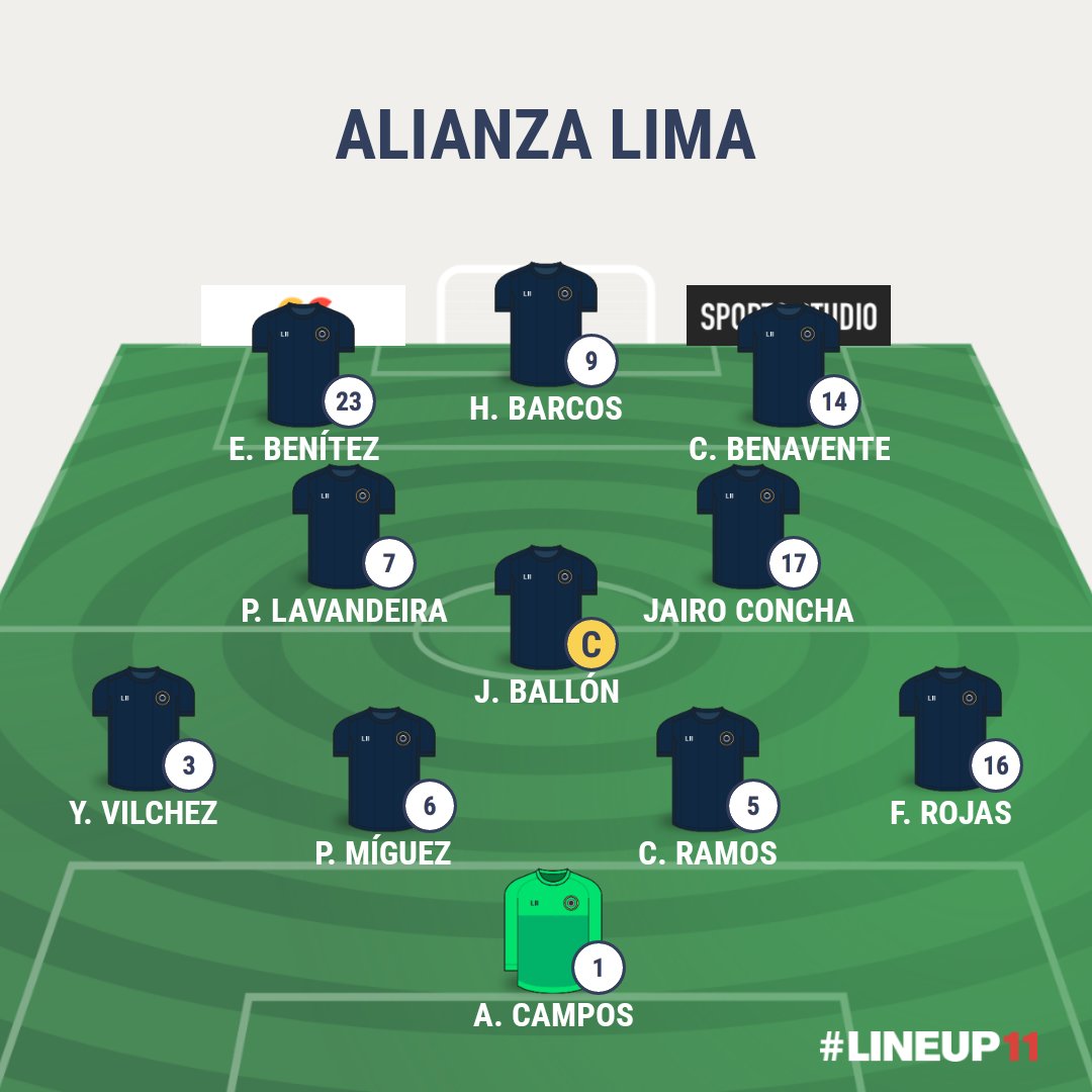 Este es el equipo inicialista de Alianza Lima, es el siguiente, según informa GOLPERU: “Ángelo Campos; Renato Rojas, Christian Ramos, Pablo Míguez, Yordi Vílchez; Josepmir Ballón, Jairo Concha; Pablo Lavandeira, Edgar Benítez, Cristian Benavente y Hernán Barcos”.