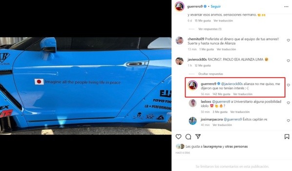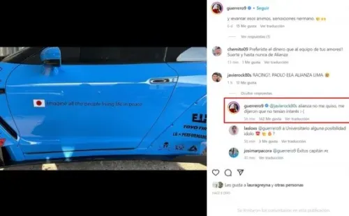 A través de una respuesta en un mensaje de Instagram, que seguramente será borrado dentro de horas, Paolo Guerrero respondió a un comentario de hincha que le hablaba sobre Racing Club. Sonando para el cuadro argentino, el delantero de 39 años tocó el tema de Alianza Lima.