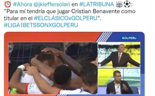 El periodista Jorge Kieffer habló en el programa La Tribuna de GOLPERU, que lo conduce Alberto Beingolea, sobre la presencia del exPyramids FC en el once titular de los ‘Blanquiazules’ de cara al clásico: “Para mí tendría que jugar Cristian Benavente como titular en el clásico”, agregó el narrador de GOLPERU el pasado viernes 15 de abril.