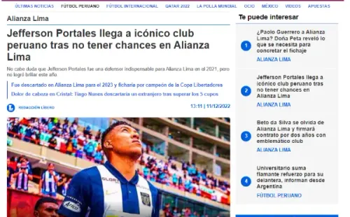La primicia fue lanzada por el periodista deportiva que más conoce sobre Alianza Lima: “Tal como lo adelantó José Varela de LÍBERO, ante la falta de chances, el jugador ha pasado a Carlos A. Mannucci, donde espera recuperar el nivel que mostró a lo largo del 2021. El club trujillano recientemente anunció diversas contrataciones, y la del defensor llamó la atención de hinchas”.