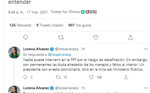 Igual, esa no fue toda su opinión: “Cuestionar al TAS en vez de a la FPF solo por temas de afición me parece inútil. Mi corazón blanquiazul puede hacer ver mi opinión como parcializada pero busco entender”.