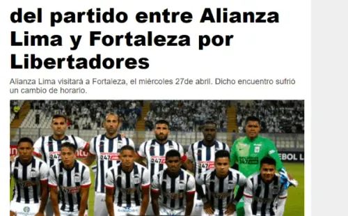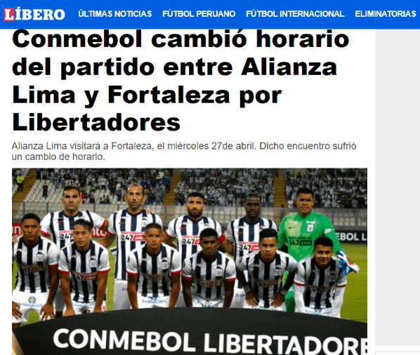 “La Conmebol cambió solo la hora del partido, es decir, se mantendrá la misma fecha, pero será a las 5:00 p.m. (hora peruana). La dirigencia de Alianza Lima ya tiene el documento y se adecuará a la variación”. Entonces se retrocede un par de horas, participarán más temprano ‘los blanquiazules’, y esperemos que hagan un buen planteamiento.