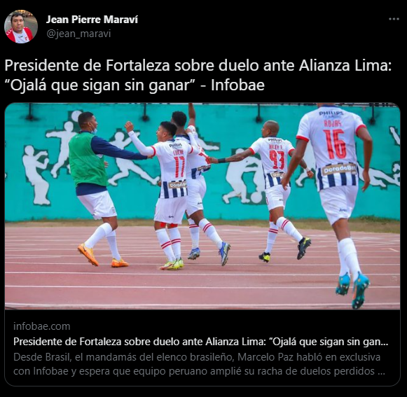 “Es un juego muy difícil, respetamos mucho a Alianza Lima, puesto que tiene tradición en la competición de Copa Libertadores. Nosotros aún no tenemos eso (debutan en la Copa Libertadores). No veo como obligación ganar, vamos a buscar hacer un buen juego”. Ojalá hagan historia y roben puntos ‘los blanquiazules’, para demostrarle a Marcelo Paz (presidente de Fortaleza) que está sumamente equivocado.