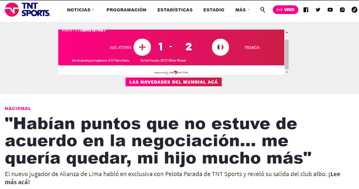 En una entrevista final para TNT Sports Chile, el ex Sporting Cristal soltó parte de su corazón para explicar lo que ha sido su traspaso y regreso a Alianza Lima. Hay un motivo principal, el cual el hincha seguramente agradecerá a la directiva que se encargó de este movimiento en el mercado de pases para la temporada 2023.