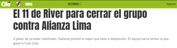 “De ellos, el único que sería titular sería el arquero; el defensor ocuparía un lugar en el banco como en todo el semestre y en la mitad de la cancha seguiría Agustín Palavecino, de gran nivel contra Colo Colo”. Entonces, pasamos a limpio toda la información sobre cómo estará River Plate plantándose ante Alianza Lima, en el ‘Estadio Monumental de Núñez’.