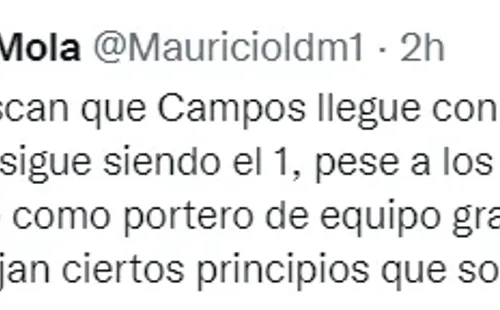 “En Alianza Lima buscan que Campos llegue con continuidad al Clásico. Para Carlos Bustos sigue siendo el 1, pese a los grandes partidos de Saravia, quien atajó como portero de equipo grande. Angelo volvería contra UTC. Los DTs manejan ciertos principios que son inquebrantables”, revelóMauricio Loret de Mola en su cuenta de Twitter.