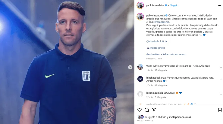 Alianza Lima piensa a futuro y aseguró la renovación de Pablo Lavandeirade cara a la próxima temporada. La noticia fue confirmada por el mismo jugador vía redes sociales, indicando que se siente muy feliz.