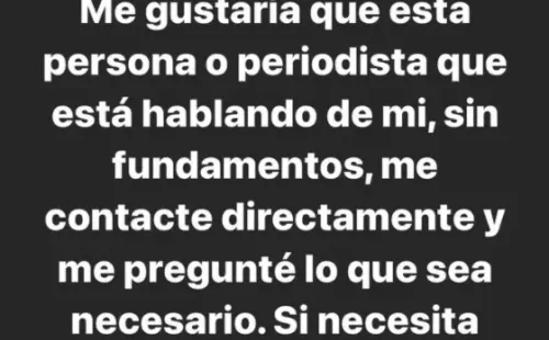 “Me gustaría que esta persona o periodista que está hablando de mí, sin fundamentos, me contacte y me pregunte lo que sea necesario. Si necesita audiencia o prensa yo le doy un poco, sin problemas. Muchas gracias”, escribió.