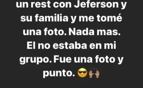 Quien subió la historia e hizo que todo esto se haga público sí se manifesto. “Gente solo coincidí en un restaurante con Jefferson y su familia y me tomé una foto. Nada más. Él no estaba en mi grupo. Fue una foto y punto”, escribió en sus redes Tito Parodi.