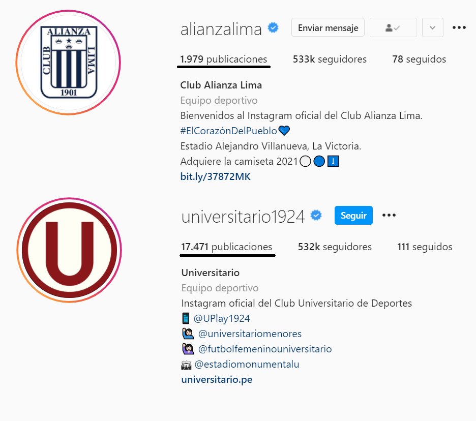 Tal fue así que Alianza Lima pasó a Universitario de Deportes en seguidores en Instagram. Los Íntimos llegaron a 533 mil cuando los Cremas se mantienen en 532 mil.