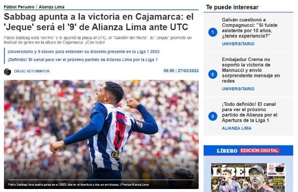 Finalmente, con nombre propio, determinan, después de buenos ejemplos, al colocho como el único titular confirmado para el partido contra el Gavilán del Norte: “Pablo Sabbag ya está mentalizado en el duelo del domingo ante UTC en Cajamarca (3:30 p.m.) en el Estadio Héroes de San Ramón. La idea de Salas es que vuelva a ser titular y anote todos los goles posibles. ¡Eso!”.