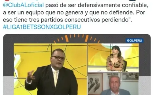 Jesús ‘El Tanke’ Arias habló sobre Alianza Lima y el mal momento futbolístico que vienen pasando en la Liga 1: “Alianza Lima pasó de ser defensivamente confiable, a ser un equipo que no genera y que no defiende. Por eso tiene tres partidos consecutivos perdiendo”, añadió el conductor del programa Tiempo Extra de Gol Perú sobre los ‘íntimos’.
