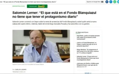Además, explica Salomón Lerner que él no se fue de Alianza Lima como muchos dicen: “Yo no he salido. Simplemente, he dado un paso al costado del Fondo Blanquiazul, pero yo sigo siendo socio, hincha y acreedor, porque Promotora Blanquiazul, que también es de Fernando Farah, de Antonio Armejo y mi persona, es parte de la Junta de Acreedores. Claro que con un porcentaje pequeño. Nosotros somos socios de muchos años, de nuestra chiquititud, como se dice”.