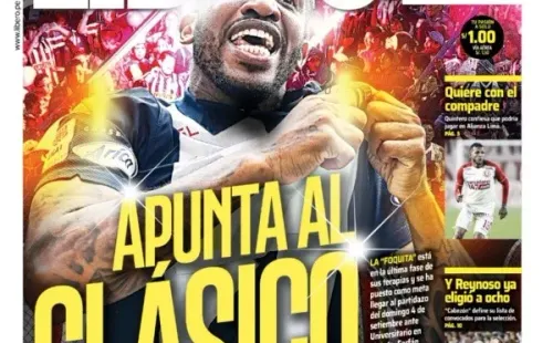 “La ‘Foquita’ está en la última fase de sus terapias y se ha puesto como meta llegar al partidazo del domingo 4 de septiembre ante Universitario en Matute. Farfán sueña con un gol ante los cremas“, menciona el diario deportivo en su portada.
