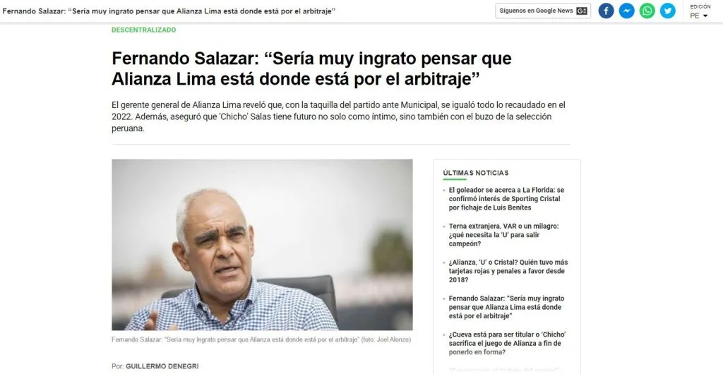 Así lo explica en una extensa entrevista el Gerente General de Alianza Lima, Fernando Salazar. El encargado de cuidar los intereses del cuadro íntimo de La Victoria, dejó muchas frases con respecto al presente administrativo de los blanquiazules. No todo es color de rosa, pero tienen un enorme aval de confianza.