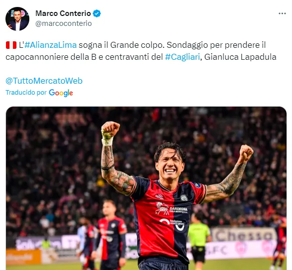 “Alianza Lima sueña con el Gran Golpe de Estado. Encuesta para sacar al pichichi del B y delantero centro del Cagliari, Gianluca Lapadula”, escribió el comunicador a través de su cuenta de twitter.
