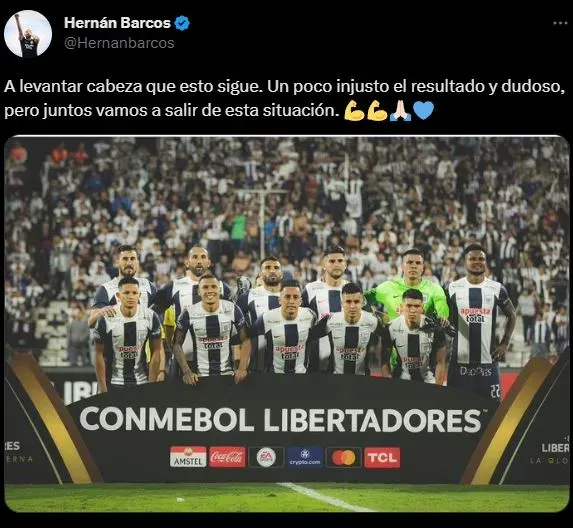 El delantero argentino en su cuenta de Twitter subió un mensaje con fotografía, tras perder contra Atlético Mineiro por Copa Libertadores 2023: “A levantar cabeza que esto sigue. Un poco injusto el resultado y dudoso, pero juntos vamos a salir de esta situación”.