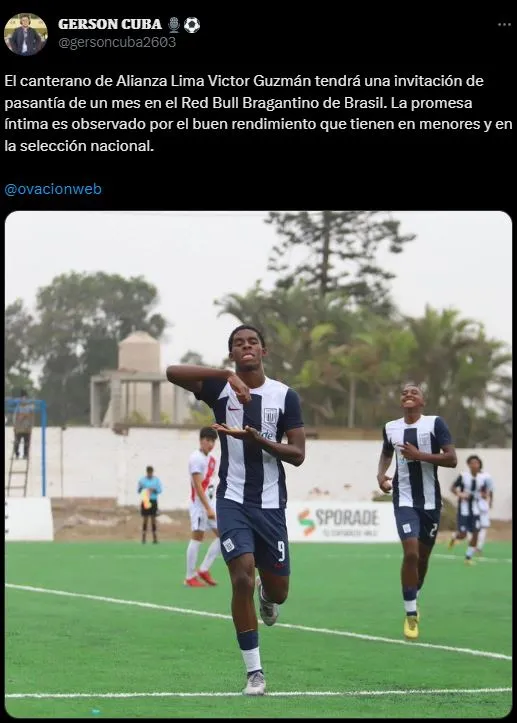 Lo que explica el comunicador social es claro: “El canterano de Alianza Lima, Victor Guzmán, tendrá una invitación de pasantía de un mes en el Red Bull Bragantino de Brasil. La promesa íntima es observada por el buen rendimiento que tienen en menores y en la selección nacional”.
