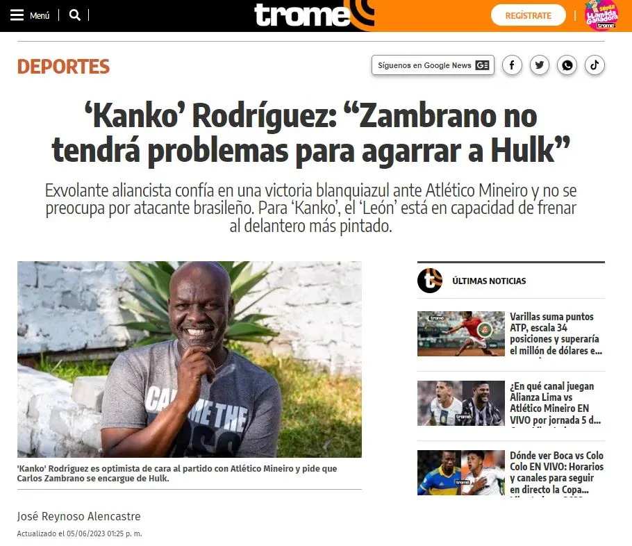 Quien entiende mucho más del deporte rey es el buen Kanko Rodríguez. El ex jugador de Alianza Lima habló con El Trome, a horas de este esperado versus. Dejo palabras solo de aliento, hoy son un solo puño: “Con todo, somos locales y tenemos que hacer sentir eso, hay que estar más unidos que nunca porque mañana ganamos. Sobre el papel sí (Mineiro favorito en la previa), pero nosotros ganamos sí o sí”.